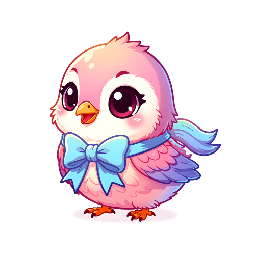 Adorable Pink Bird with Blue Bow - Cute Digital Art